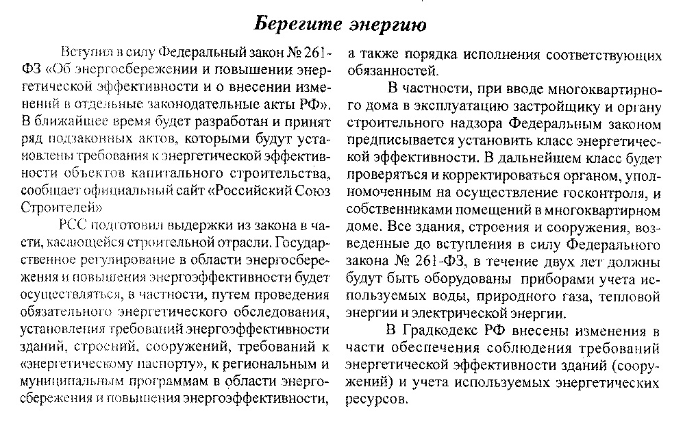 "Берегите энергию". Заметка. Информационный сборник № 12 (186). Министерство строительного комплекса Московской области".