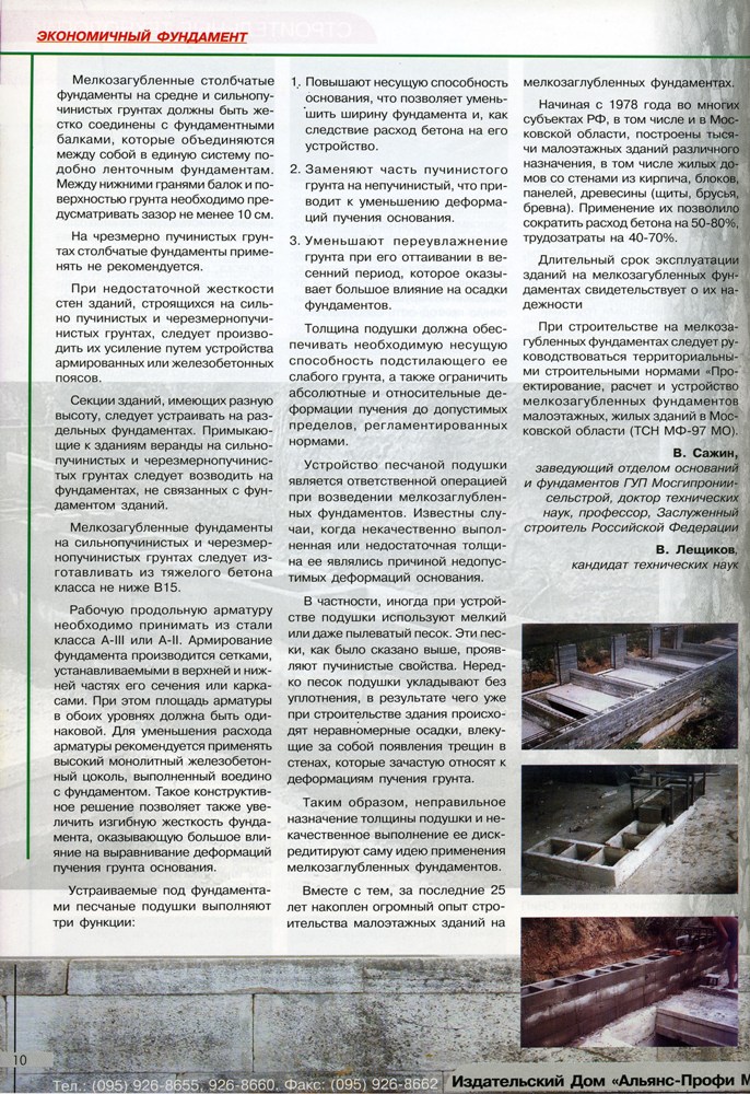 Лещиков В. А., Сажин В.С. "Экономичный фундамент".